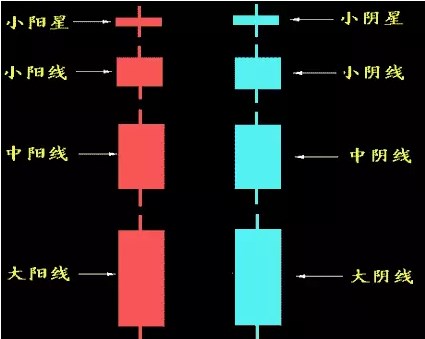 根据开盘价与收盘价的波动范围,可将K线分为极阴、极阳,小阴、小阳,中阴中阳和大阴、大阳等线型。