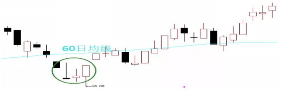 当主力机构和散户同时都看好该股中线走势,可是主力机构不愿意散户坐轿。所以,在拉升前就采取极端技术破位手段以此来恐吓散户交出筹码。比如,打压股价破位60日均线造成散户恐慌,主力却顺势将散户恐慌筹码悉数吸纳。股价停留在60日均线下方并不会太长时间,通常以一根中大阳线或者连续阳线把股价推回至60日均线上方。