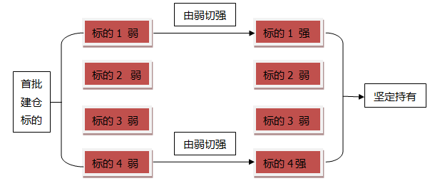 对于多标的题材,由于涉及的概念股众多,采用组合形式进行建仓,首批建仓标的假如前期走势都较弱,而非建仓标的有个别受资金青睐, 可主动将1到2个弱标的切到强标的上,使得潜伏组合弱强平衡搭配 ,构造一个金丝网,增加网住龙头的几率。