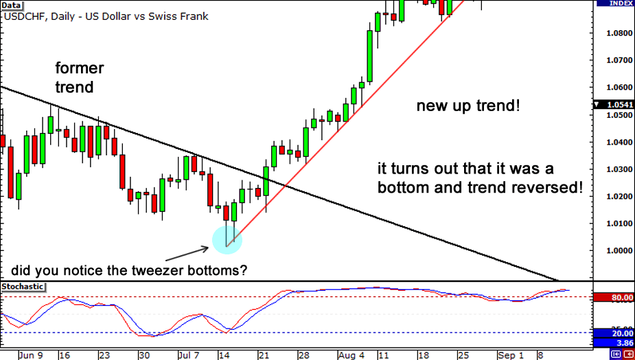 在我们入场之前,你是否注意到,在第二个低点水平形成了镊子底部线?